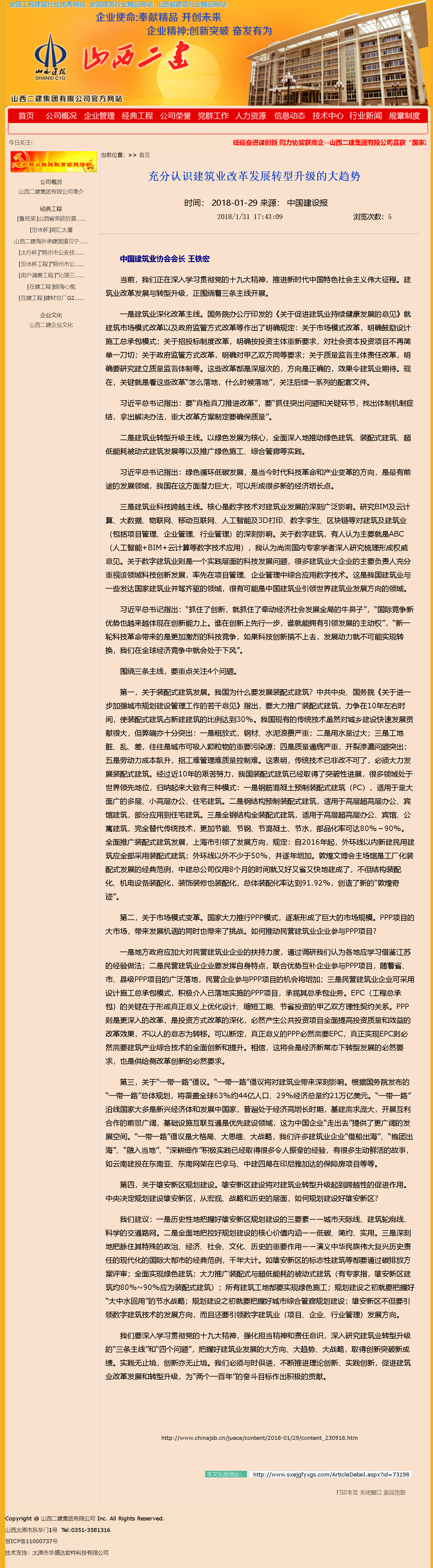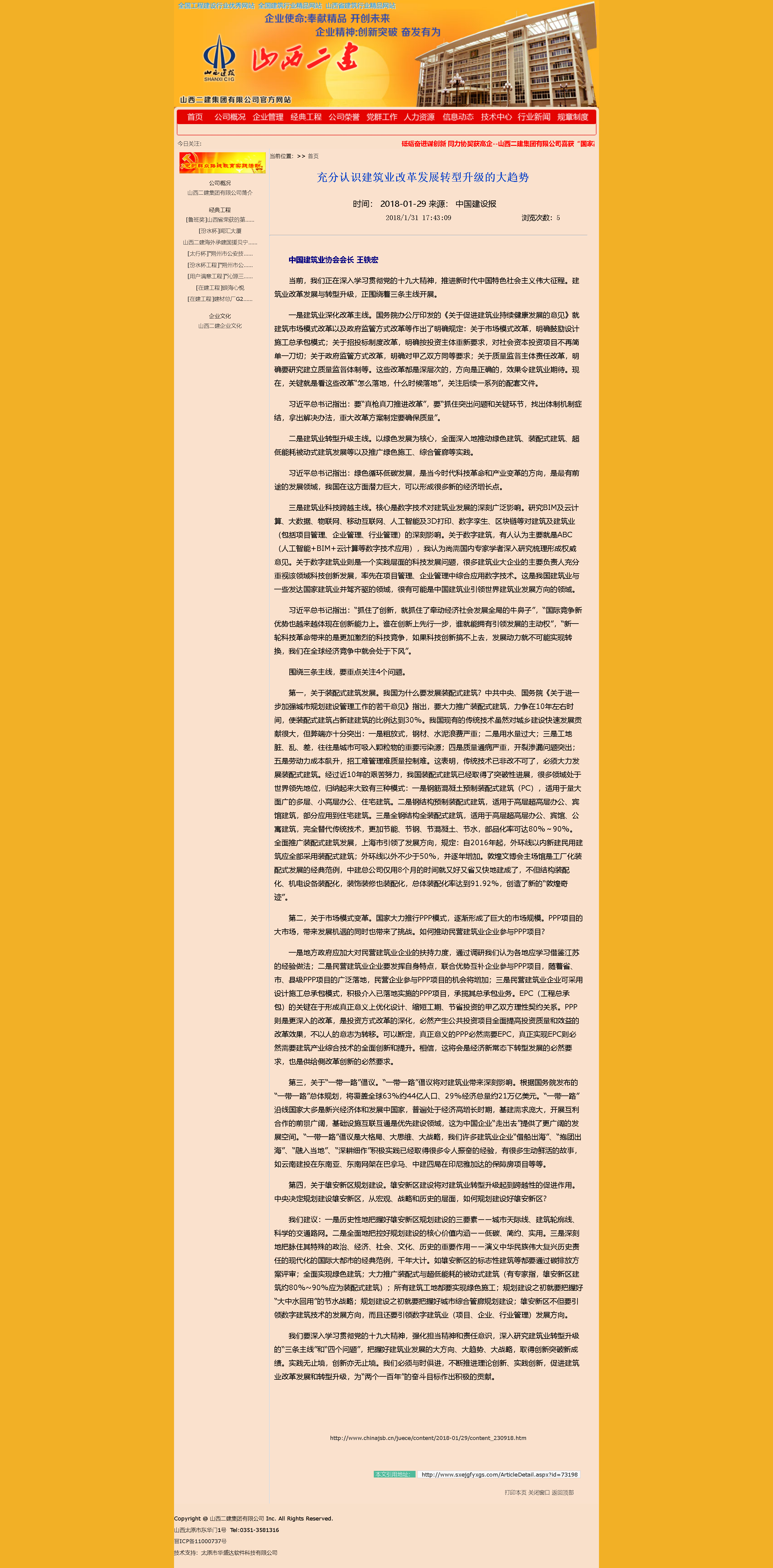 我們要深入學習貫徹黨的十九大精神,強化擔當精神和責任意識,深入研究建筑業(yè)轉型升級的“三條主線”和“四個問題”,把握好建筑業(yè)發(fā)展的大方向、大趨勢、大戰(zhàn)略,取得創(chuàng)新突破新成績。實踐無止境,創(chuàng)新亦無止境。我們必須與時俱進,不斷推進理論創(chuàng)新、實踐創(chuàng)新,促進建筑業(yè)改革發(fā)展和轉型升級,為“兩個一百年”的奮斗目標作出積極的貢獻。