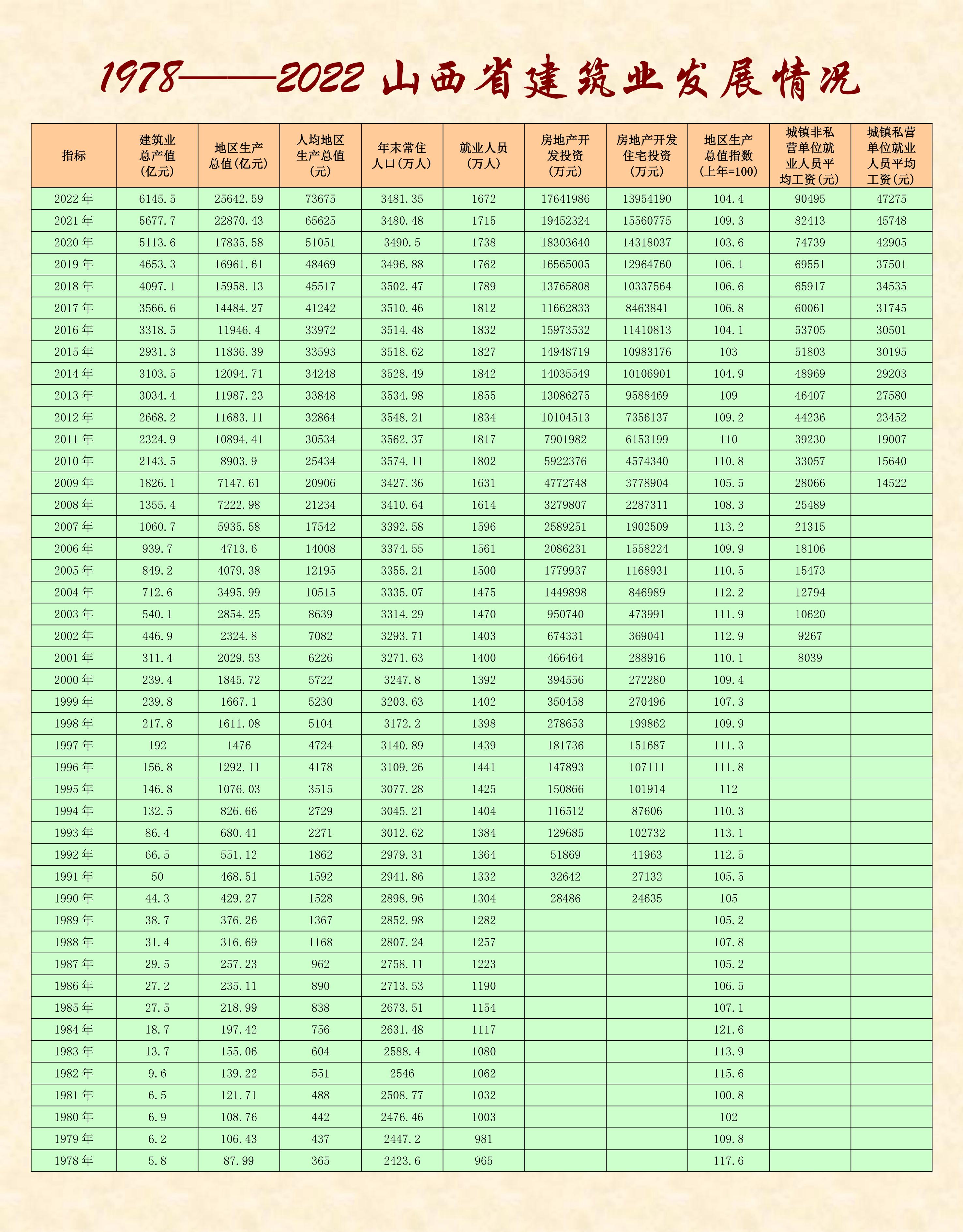 改革開放四十六年來,山西建筑業(yè)總產(chǎn)值增長111多倍,應(yīng)該說發(fā)展速度超越了歷史空間,這是從自己家內(nèi)部看自己。