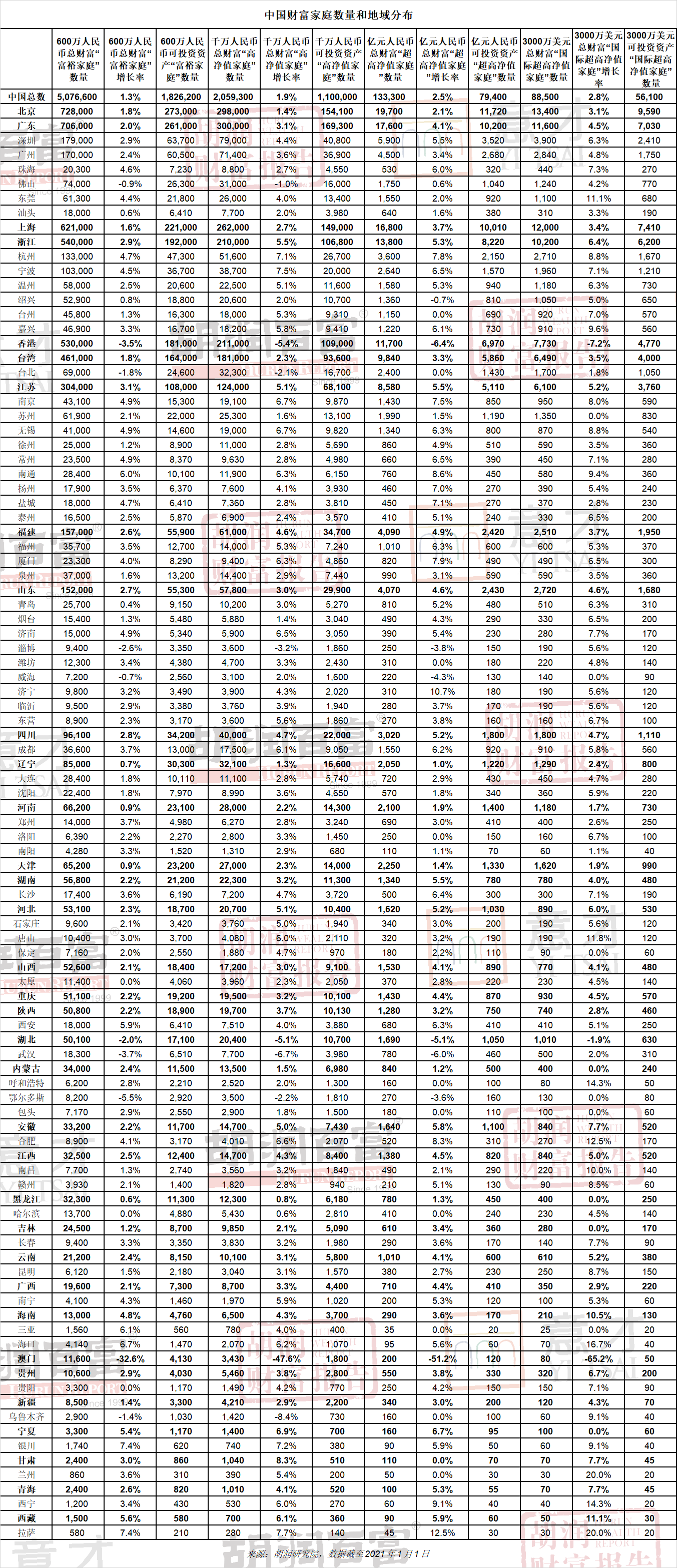 胡潤研究院今日發(fā)布《2023胡潤財富報告》(Hurun Wealth Report 2023)。報告揭示了目前中國財富家庭數(shù)量、地域分布情況以及人群畫像。這是胡潤研究院連續(xù)第15年發(fā)布《胡潤財富報告》。報告除了公布中國擁有600萬人民幣、千萬人民幣、億元人民幣和3000萬美元總財富的家庭數(shù)量之外,也公布了擁有600萬人民幣、千萬人民幣、億元人民幣和3000萬美元可投資資產(chǎn)的家庭數(shù)量。