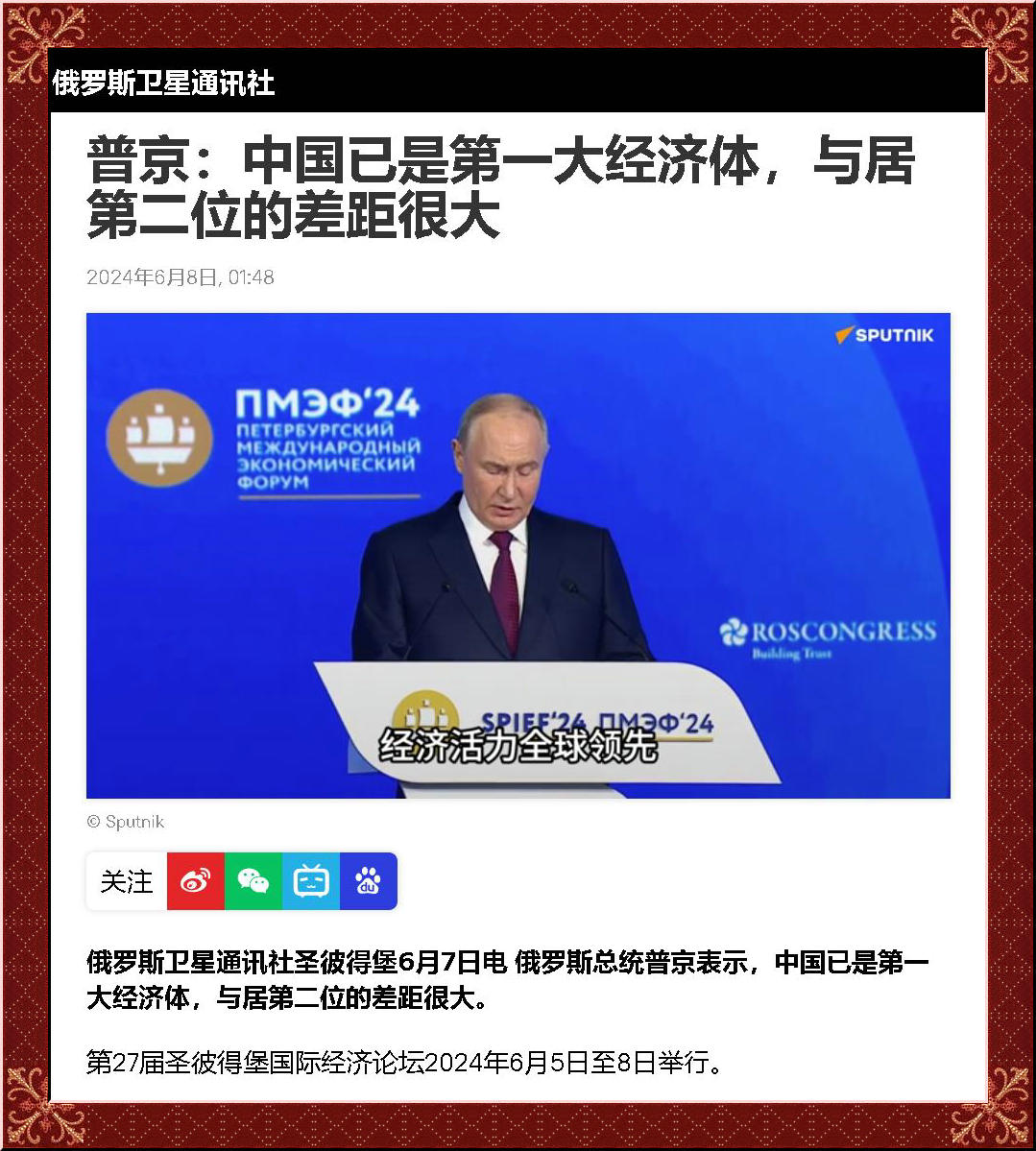 【學(xué)習(xí)園地】普京:中國已是第一大經(jīng)濟(jì)體,與居第二位的差距很大