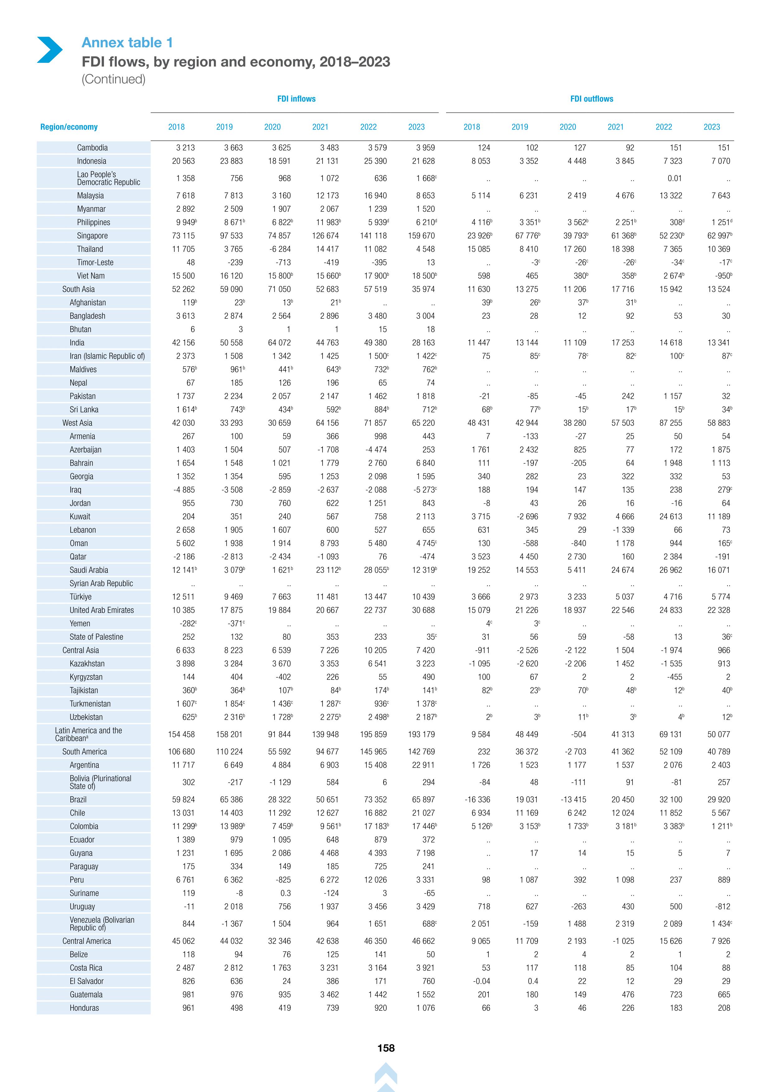 南亞地區(qū)FDI 流入量的下降主要是因?yàn)橛《认陆盗?43%,而其他國家的 FDI 流入量則保持相對穩(wěn)定。